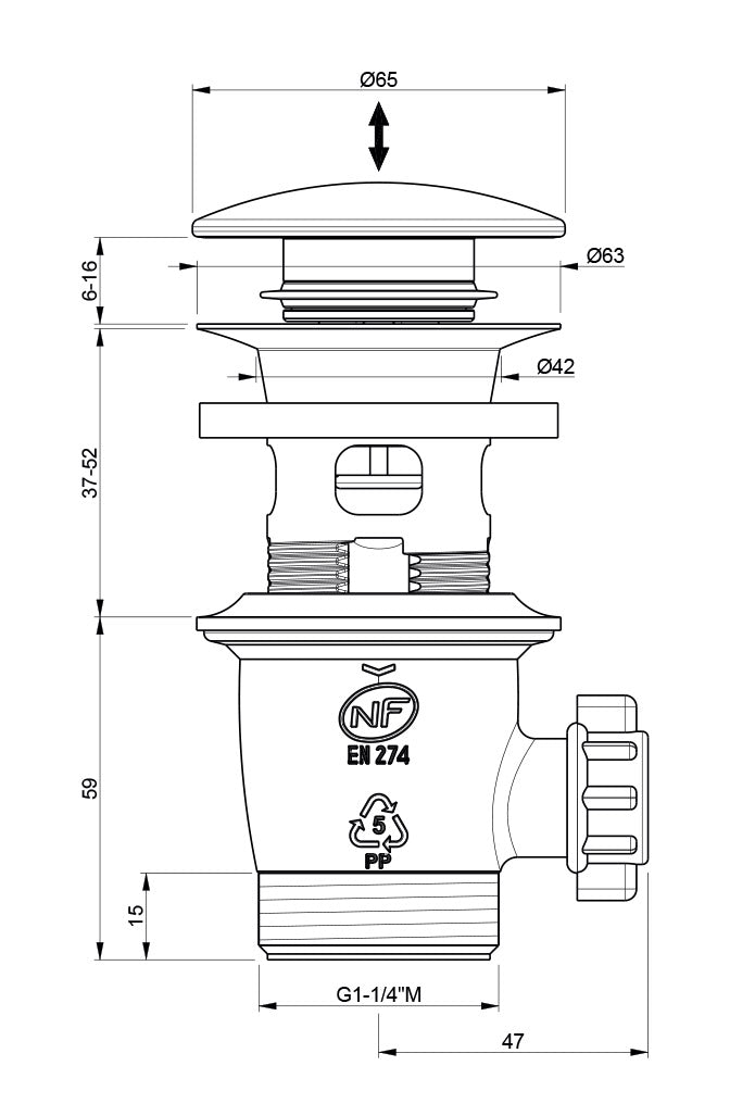 Piletta da 1"1/4 con scarico a pulsante in acciaio inox satinato Nilo.