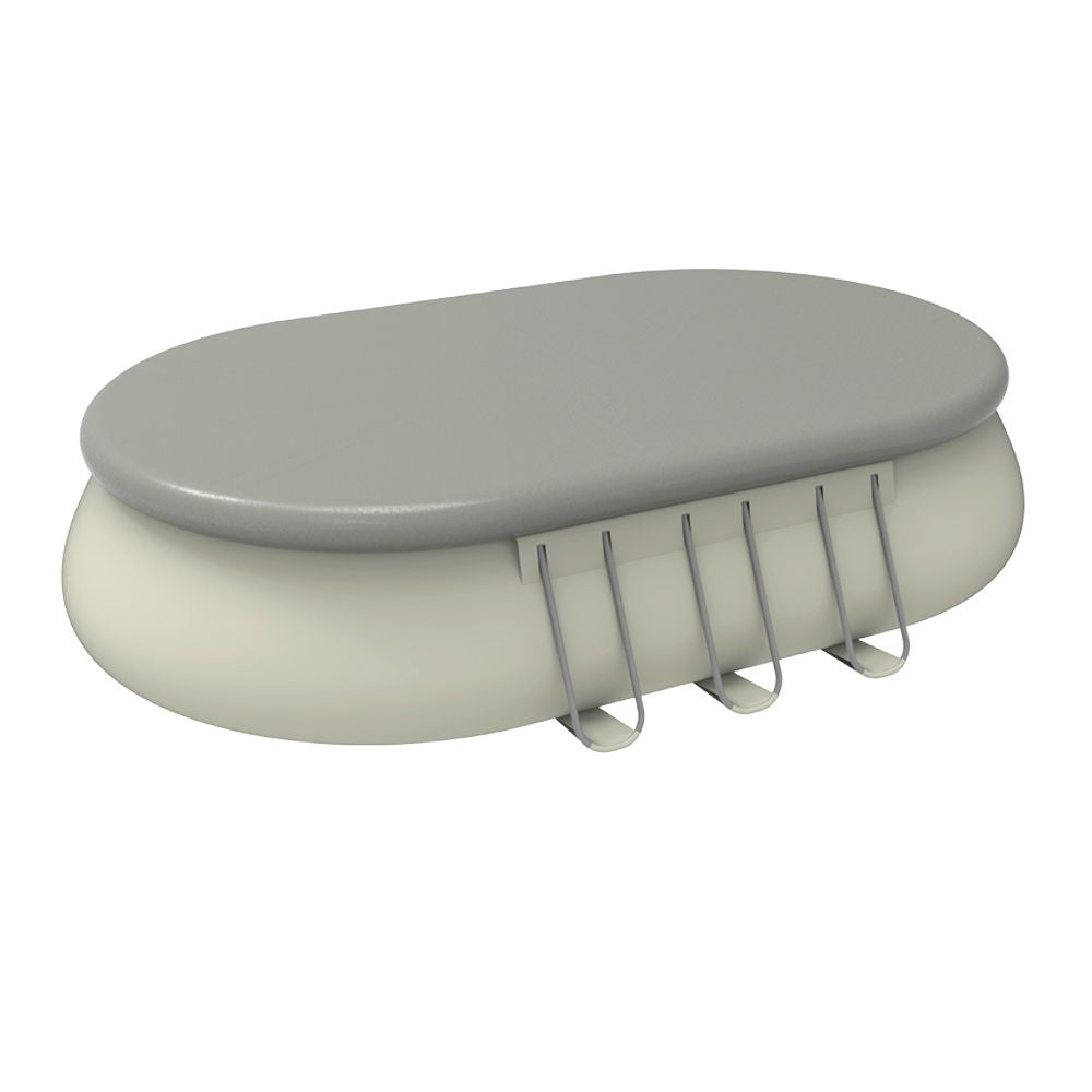 Piscina Fuoriterra Jilong Ovale Grigia con anello gonfiabile sostenuto da struttura in acciaio antiruggine e Liner in PVC multistrato.