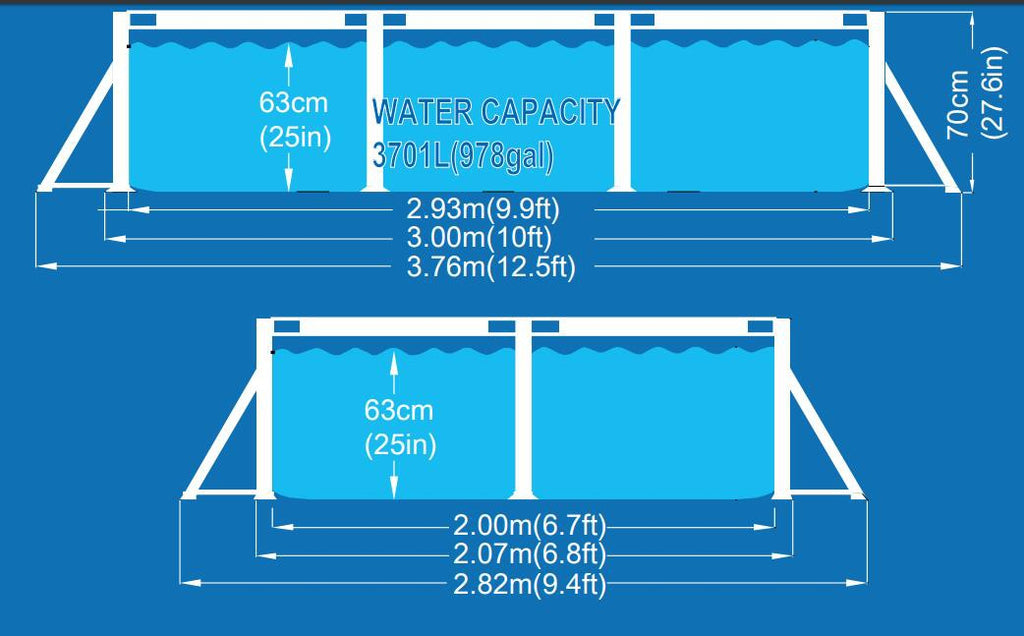 Piscina Fuoriterra Jilong Rettangolare Grigia con struttura in acciaio antiruggine e Liner in PVC multistrato.