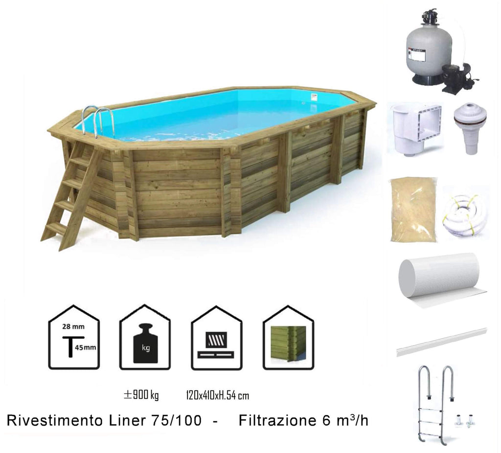 - Piscina realizzata in pino impregnato in autoclave classe 4