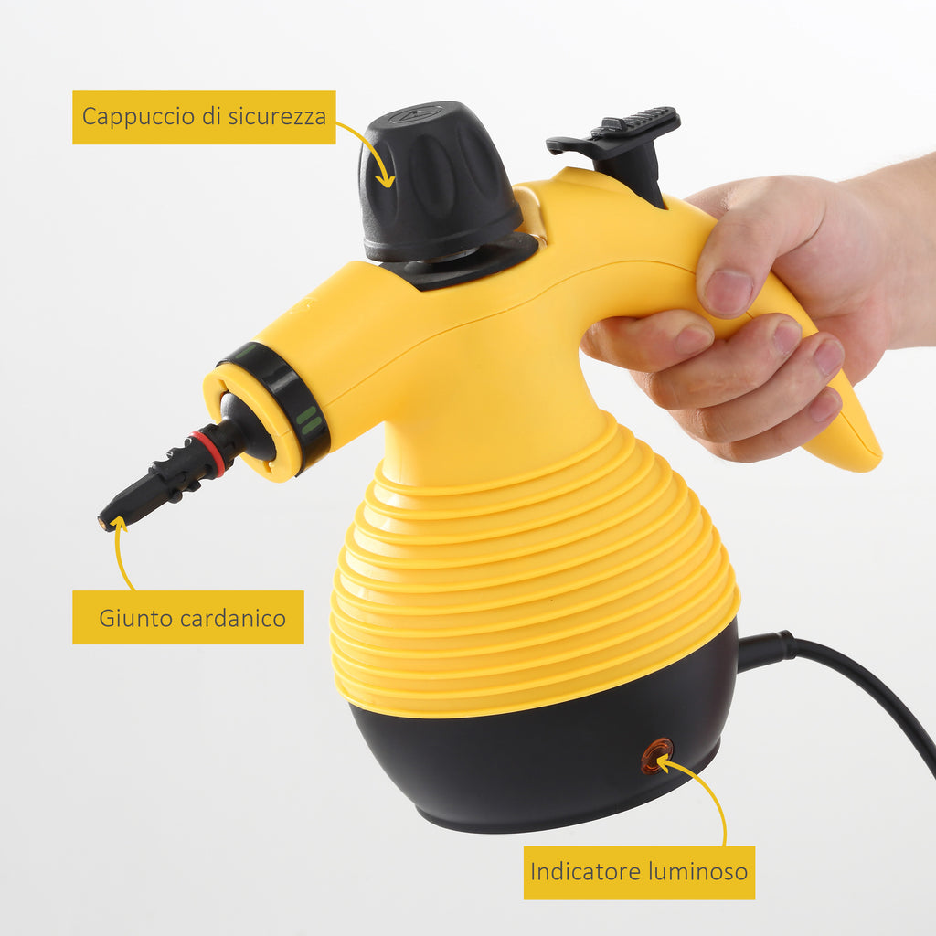 Pistola a Vapore Multiuso Portatile Serbatoio 350 ml Con 9 Accessori Gialla