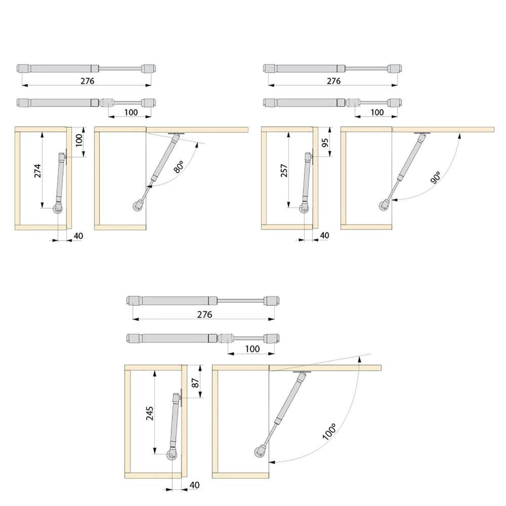 Pistone A Gas Per Ante A Ribalta Verso L'Alto Forza 11 Kg Corsa 100 mm Grigio Metallizzato 10 Pezzi Emuca