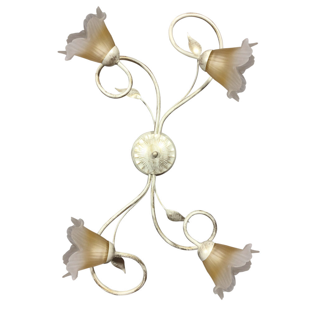 Plafoniera 4xE14 Montatura Avorio Oro Vetro Satinato Sfumato Ambra E-Energy Melania