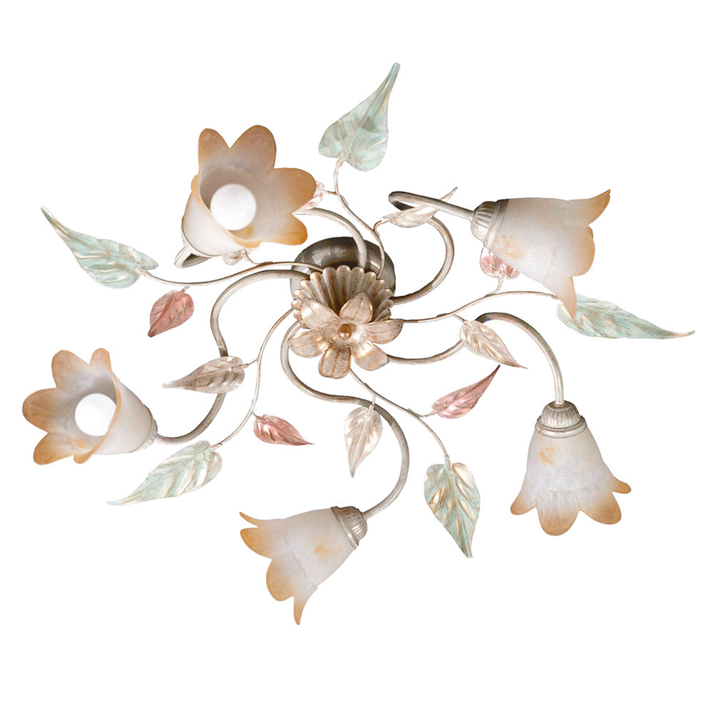 Plafoniera 5xE14 Montatura Anticata Vetro Bianco Sfumato Ambra E-Energy Giulia