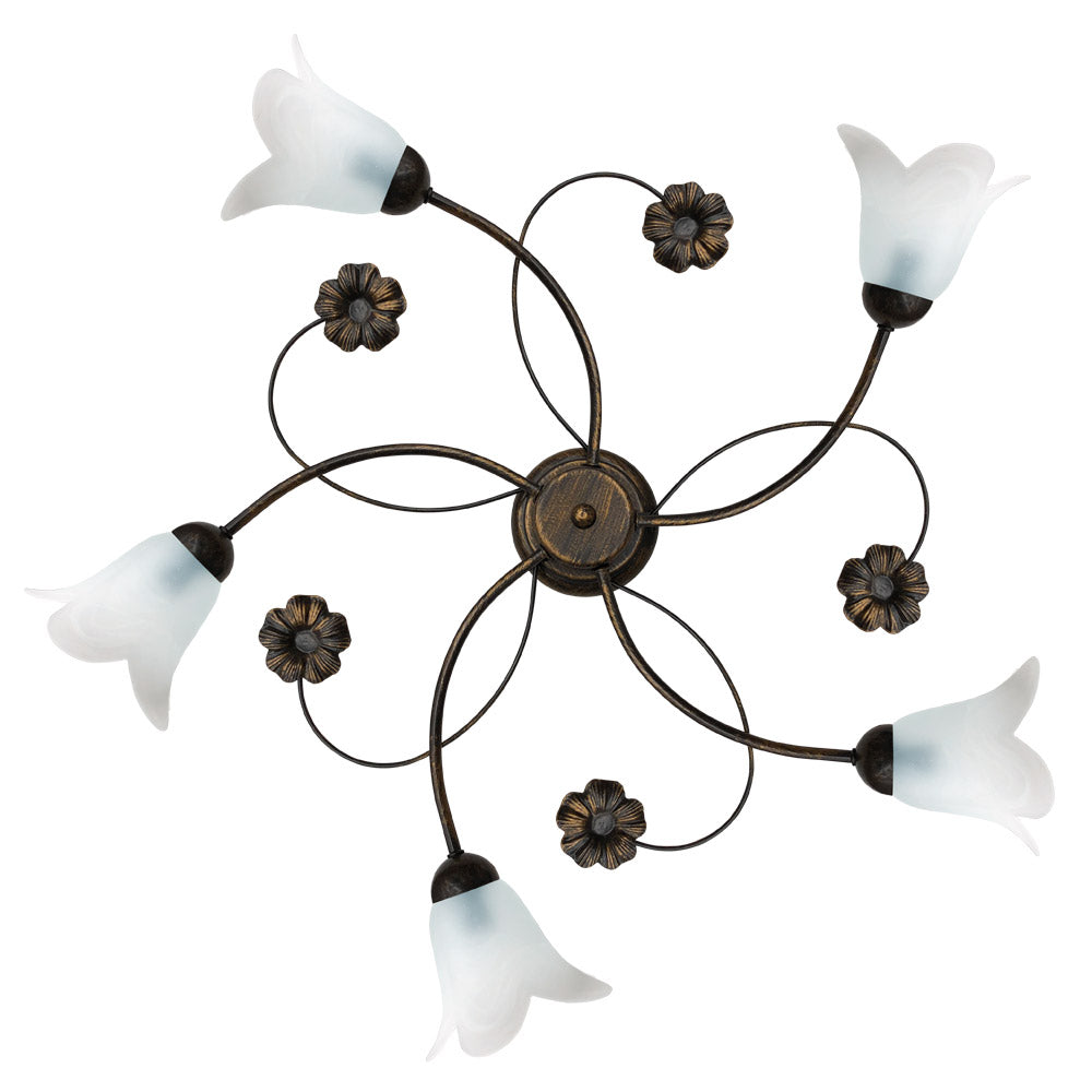 Plafoniera 5xE14 Montatura Marrone Oro Vetro Alabastro Bianco E-Energy Vera
