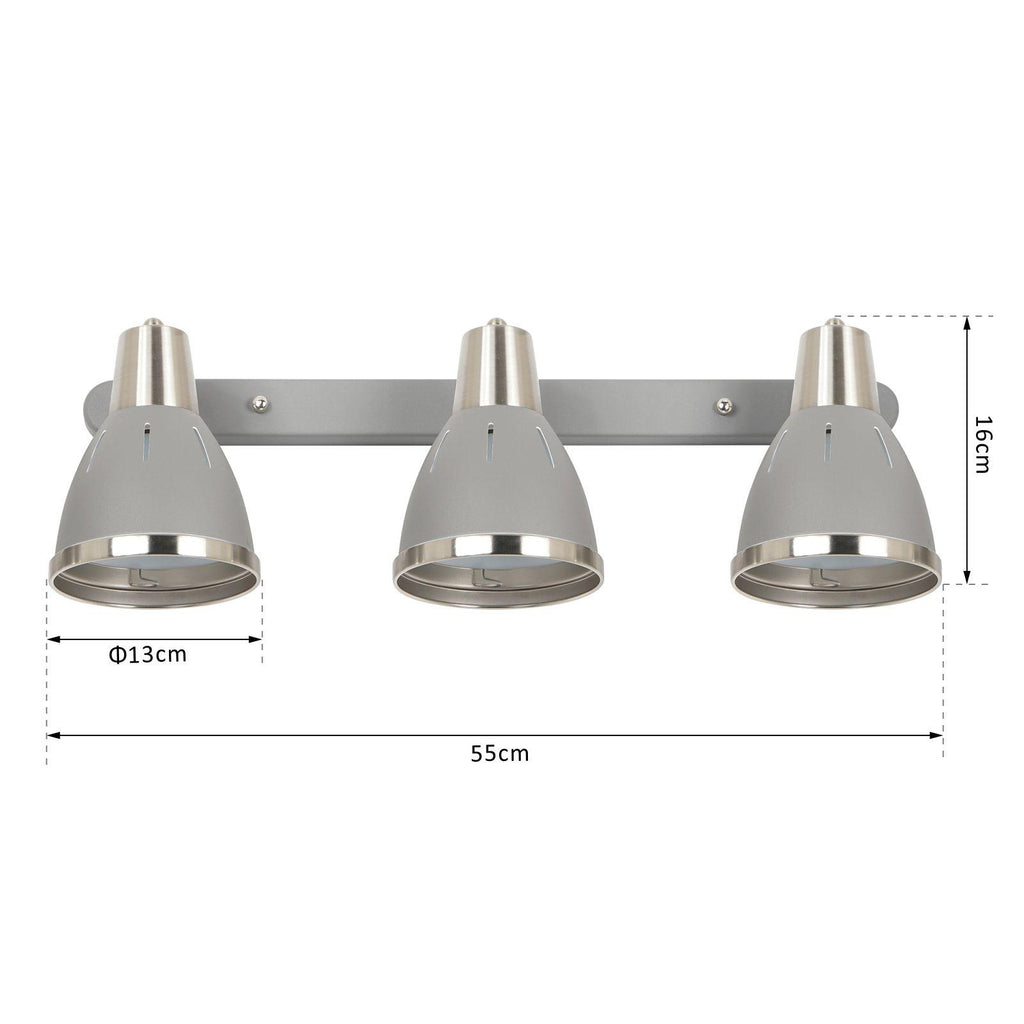 Plafoniera con 3 Faretti LED da Soffitto Orientabili in Metallo Cromato Grigio Ø13x16x55 cm