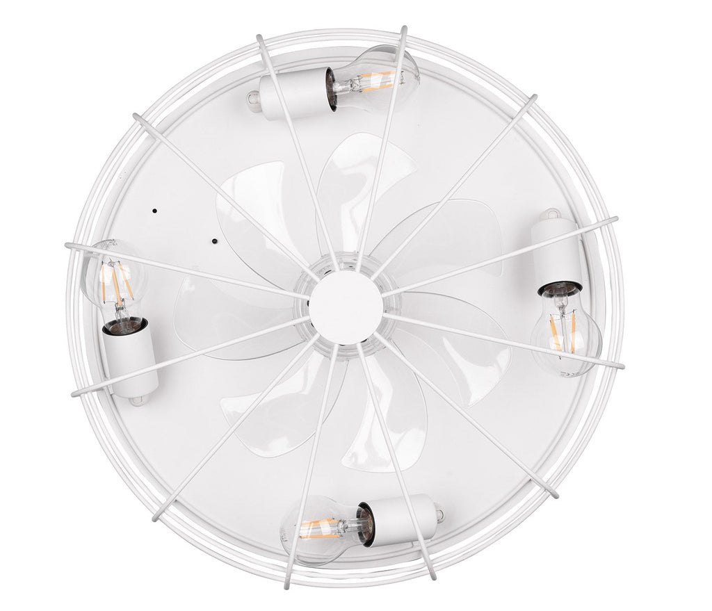 Trondheim Plafoniera con Ventilatore Gabbia Metallo Bianco Opaco con Telecomando Multifunzione Regolazione 3 Intensità e Timer D.50Cm