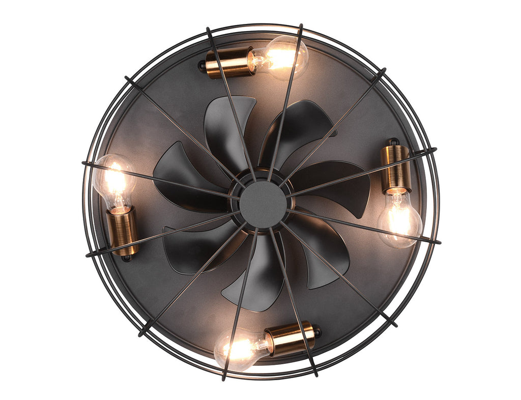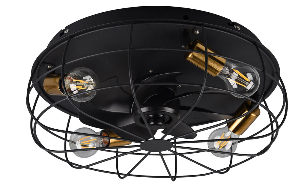 Trondheim Plafoniera con Ventilatore Gabbia Metallo Nero Opaco con Telecomando Multifunzione Regolazione 3 Intensità e Timer D.50Cm