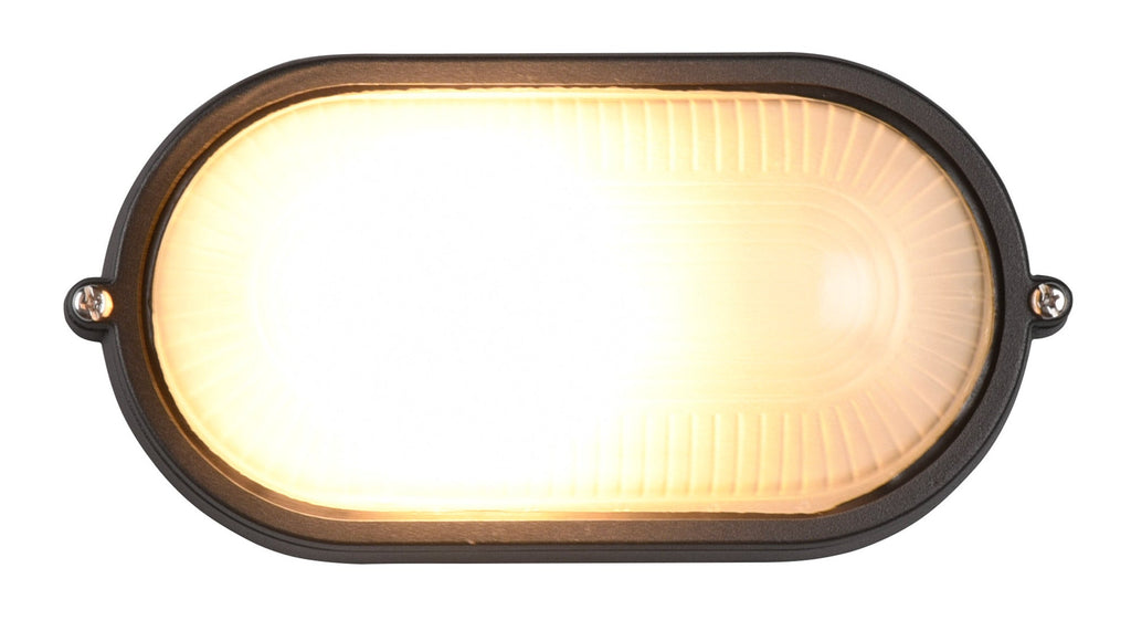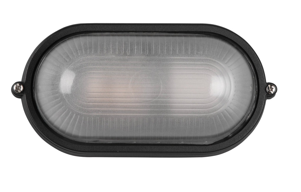 Alano Plafoniera Applique Da Esterno Ovale Fusione di Alluminio Nera e Vetro Satinato L.21,3Cm Ip44