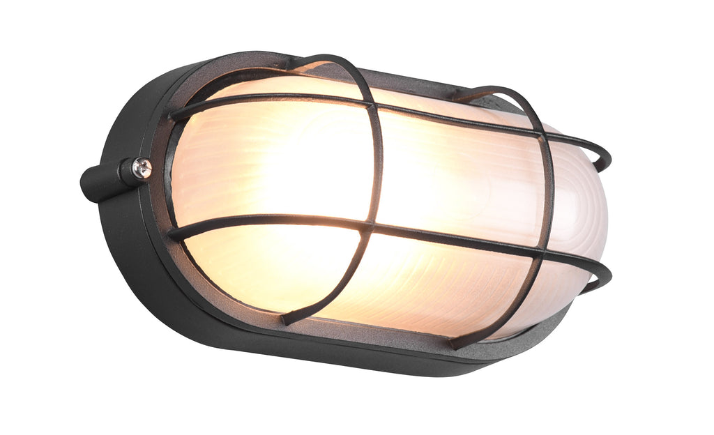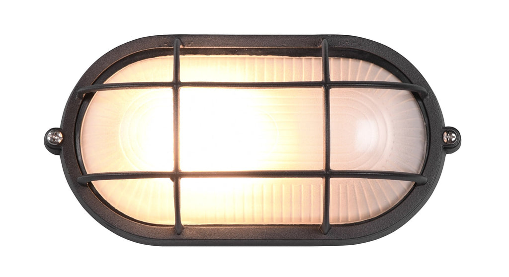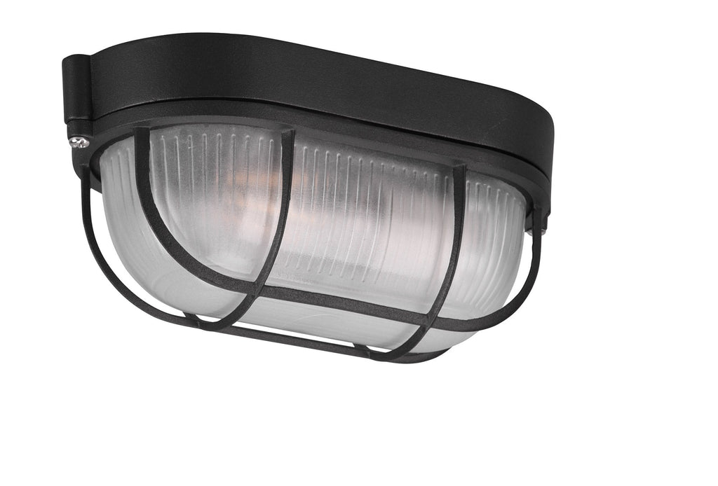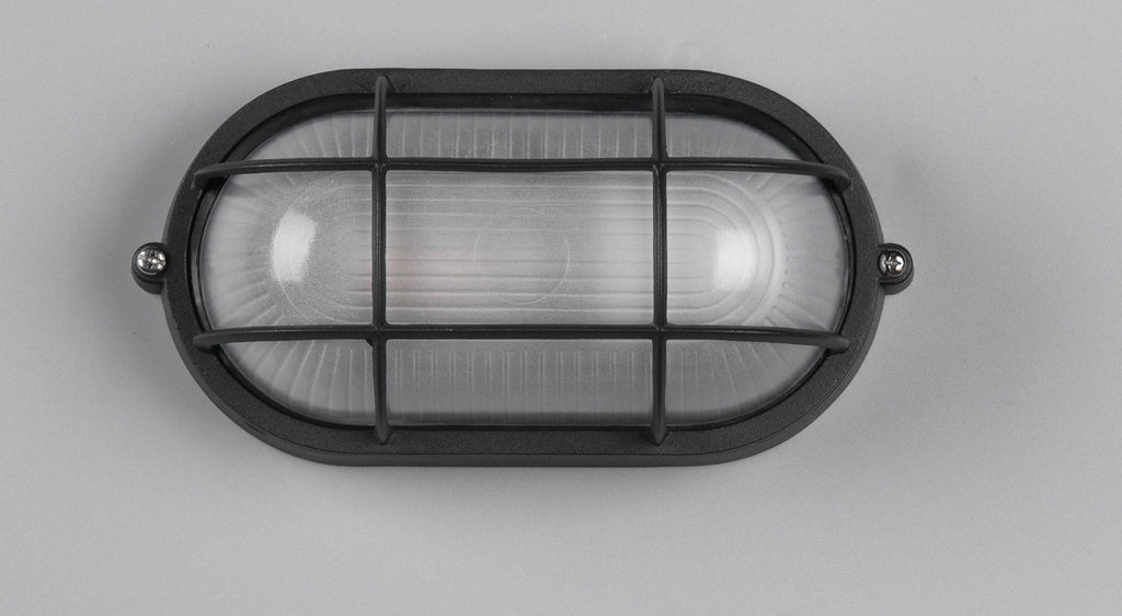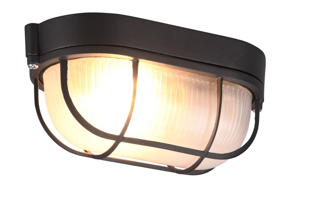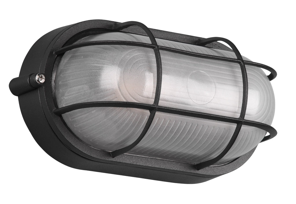 Algi Plafoniera Applique Da Esterno Ovale Fusione di Alluminio Nera con Griglia e Vetro Satinato L.21,3Cm Ip44