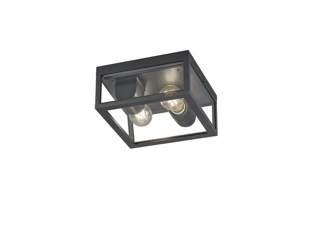Garonne Plafoniera Da Esterno Doppia Lampadina Fusione Di Alluminio Antracite E Vetro Trasparente Ip44 24X24Cm