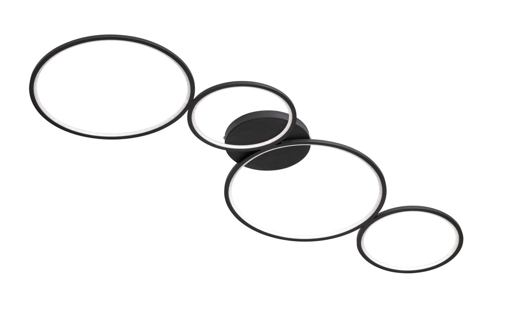 Rondo Plafoniera Led 4 Cerchi Metallo Nero Opaco Con Variazione Intensita' Con Interruttore A Parete L. 97Cm