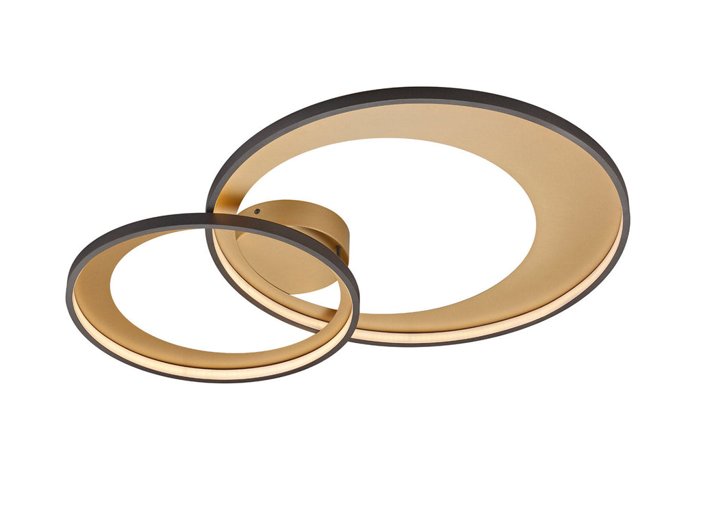 Granada Plafoniera Led Doppio Crechio Nero con Riflettore Oro Opaco con Funzione Regolazione Intensità con Interruttore Parete L. 85Cm