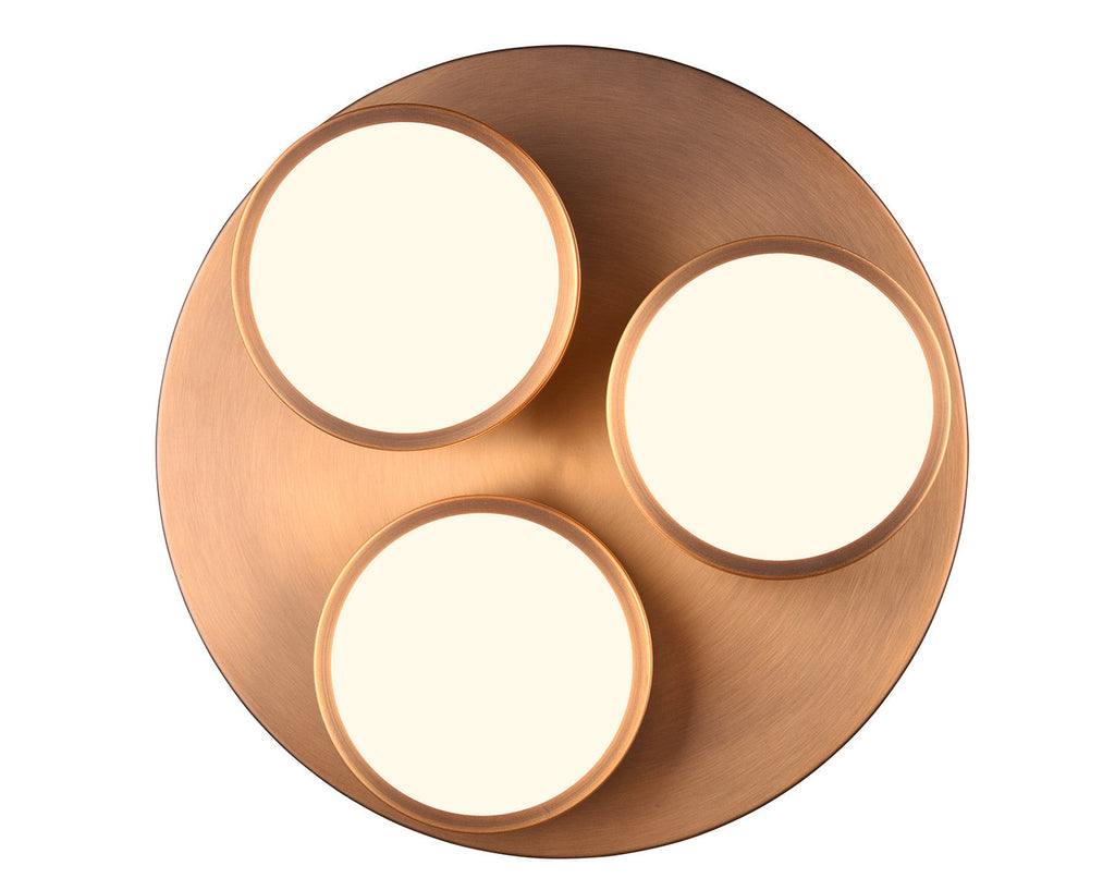 Franklin Plafoniera Led 3 Diffusori Circolari Ottone Invecchiato Regolazione Intensità con Interruttore A Parete D. 35Cm