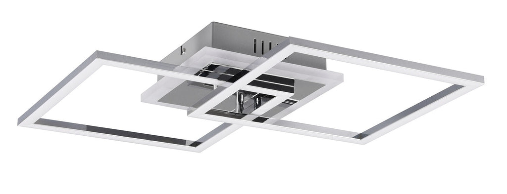 Venida Plafoniera Led Doppio Quadrato Cromato con Luce Centrale Regolazione Intensità Interruttore L.58Cm