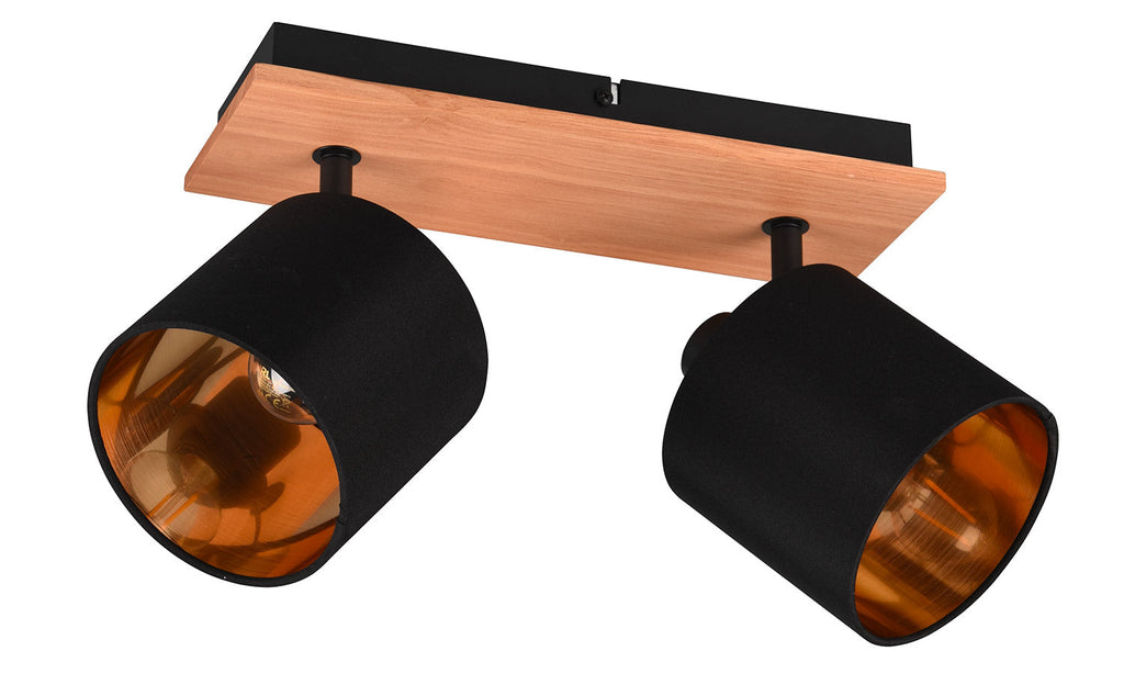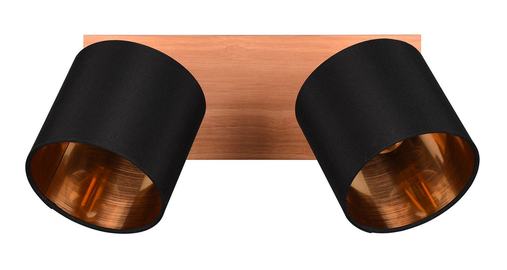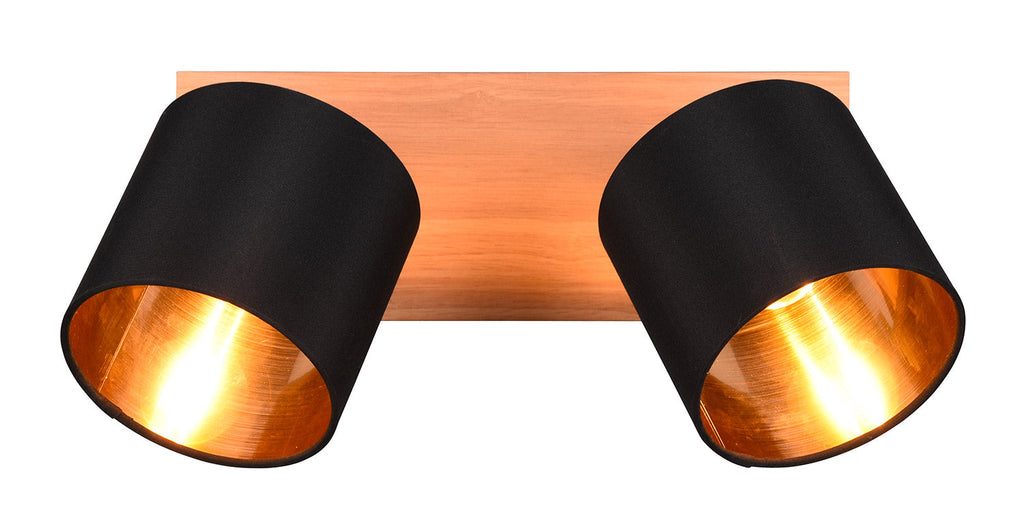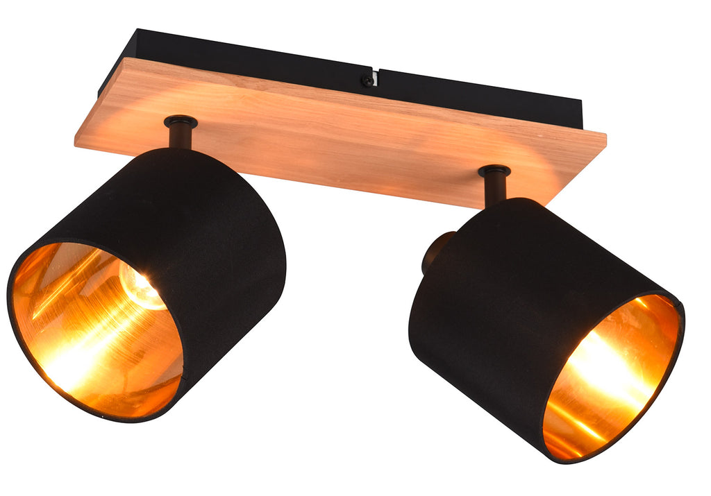 Tommy Barra 2 Spots Base Legno con Paralumi Nero e Oro L. 30Cm