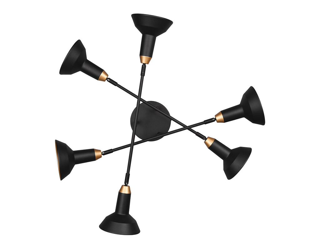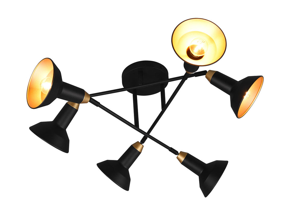 Roxie Plafoniera 6 Diffusori Orientabili Metallo Nero e Oro D. 66Cm
