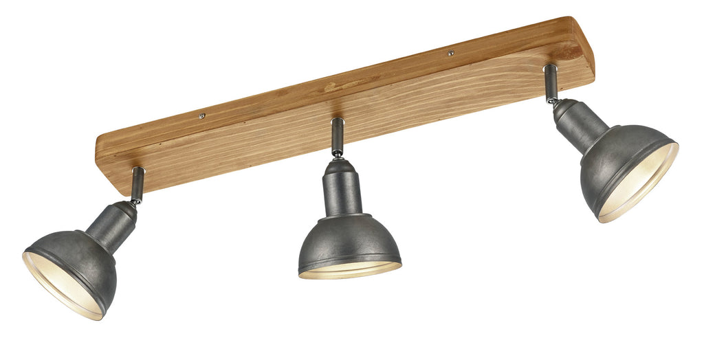Delhi Barra 3 Spots Cupola Metallo Acciaio Antico e Legno L. 58Cm