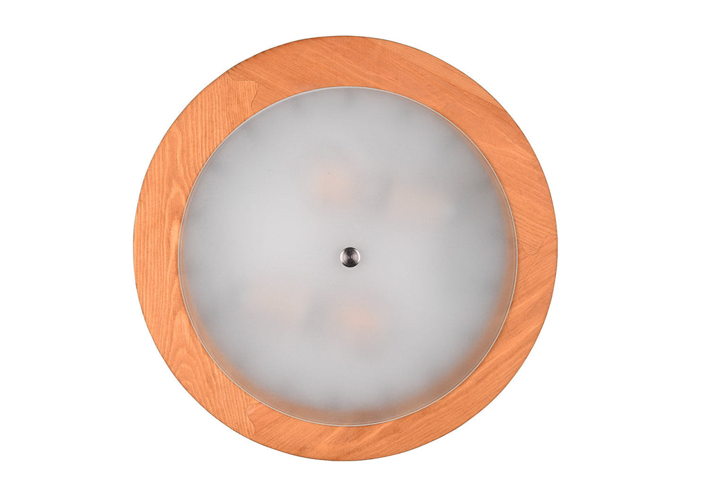 Pali Plafoniera Legno Naturale e Vetro Bianco D. 32Cm