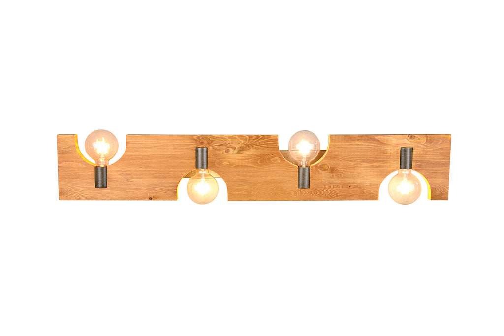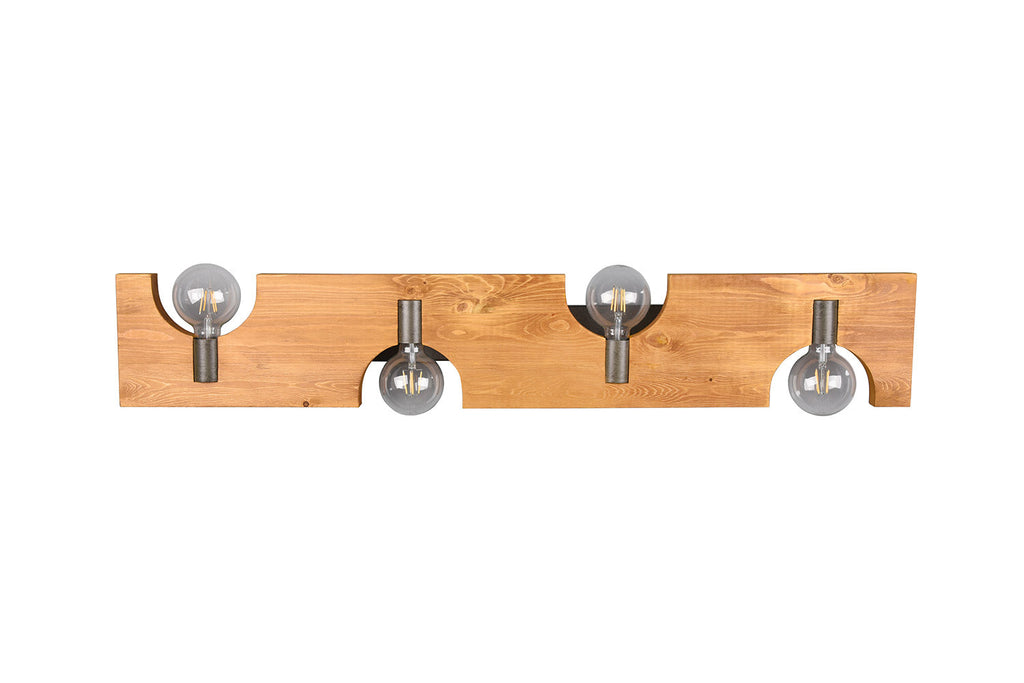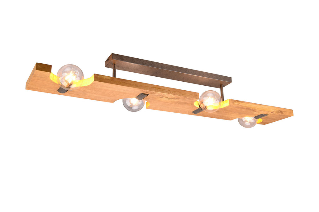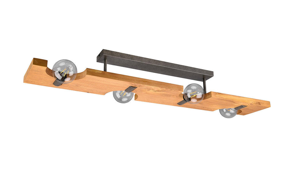 Tailor Plafoniera Legno Naturale e Metallo Acciaio Anticato 4 Luci L. 115Cm