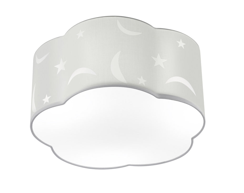 Moony Plafoniera Grande Da Bambino Paralume Nuvola Bianco con Lune e Stelle D. 40Cm