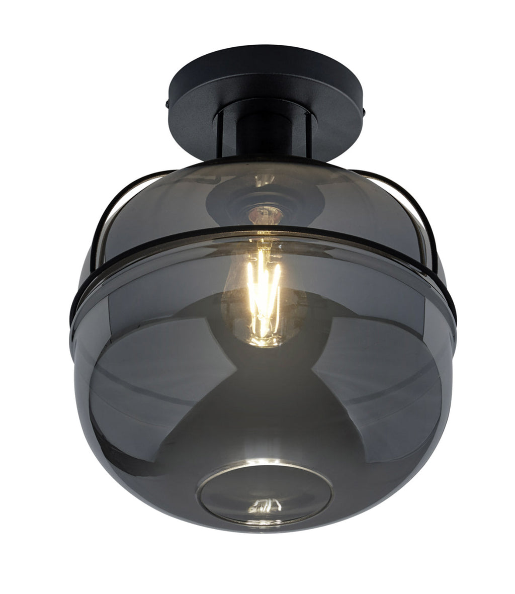 Lorena Plafoniera Metallo Nero Vetro Fume' Cromato D. 30Cm