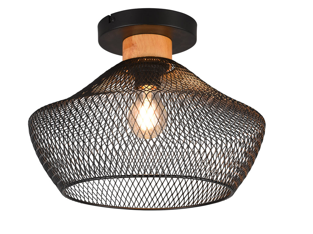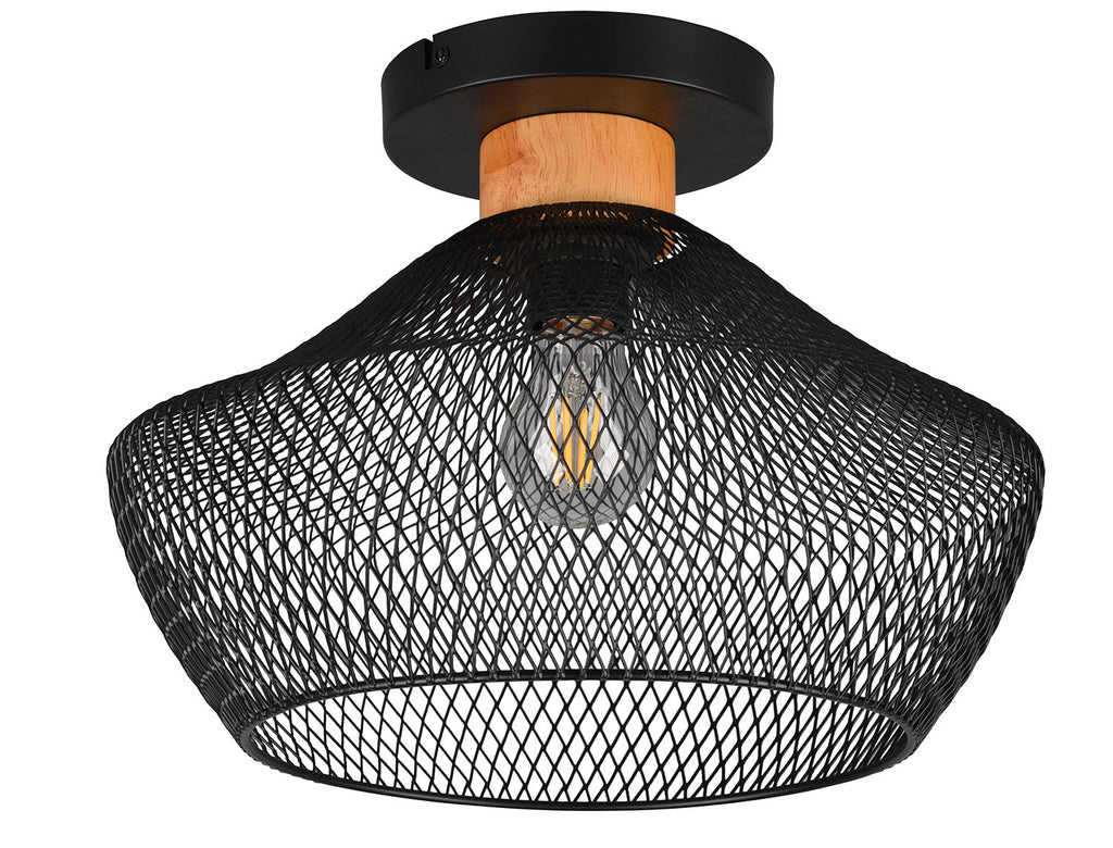 Valeria Plafoniera Metallo Gabbia Nera con Particolare in Legno Naturale D. 35Cm