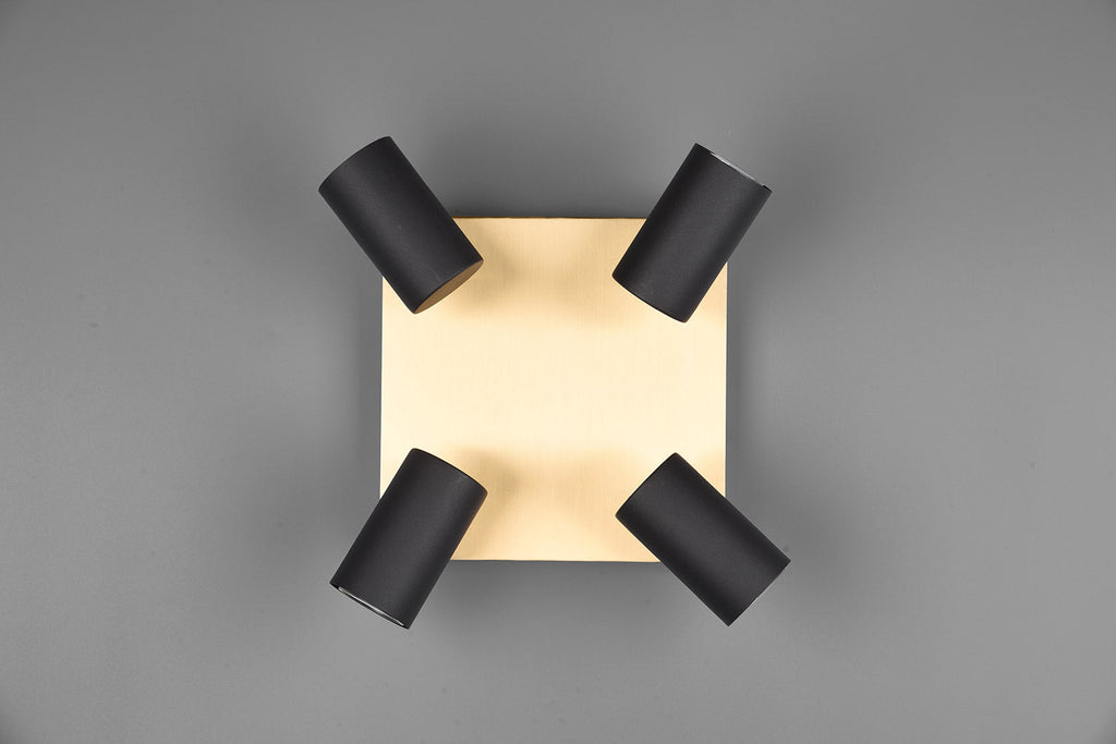 Marley Plafoniera Qua. Base Oro 4 Spots Cilindri Nero 24X24