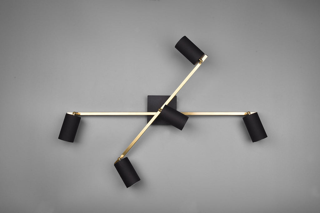 Marley Plafoniera 2 Barre Orientabili Oro con 5 Spots Cilindri Nero L.77,5Cm