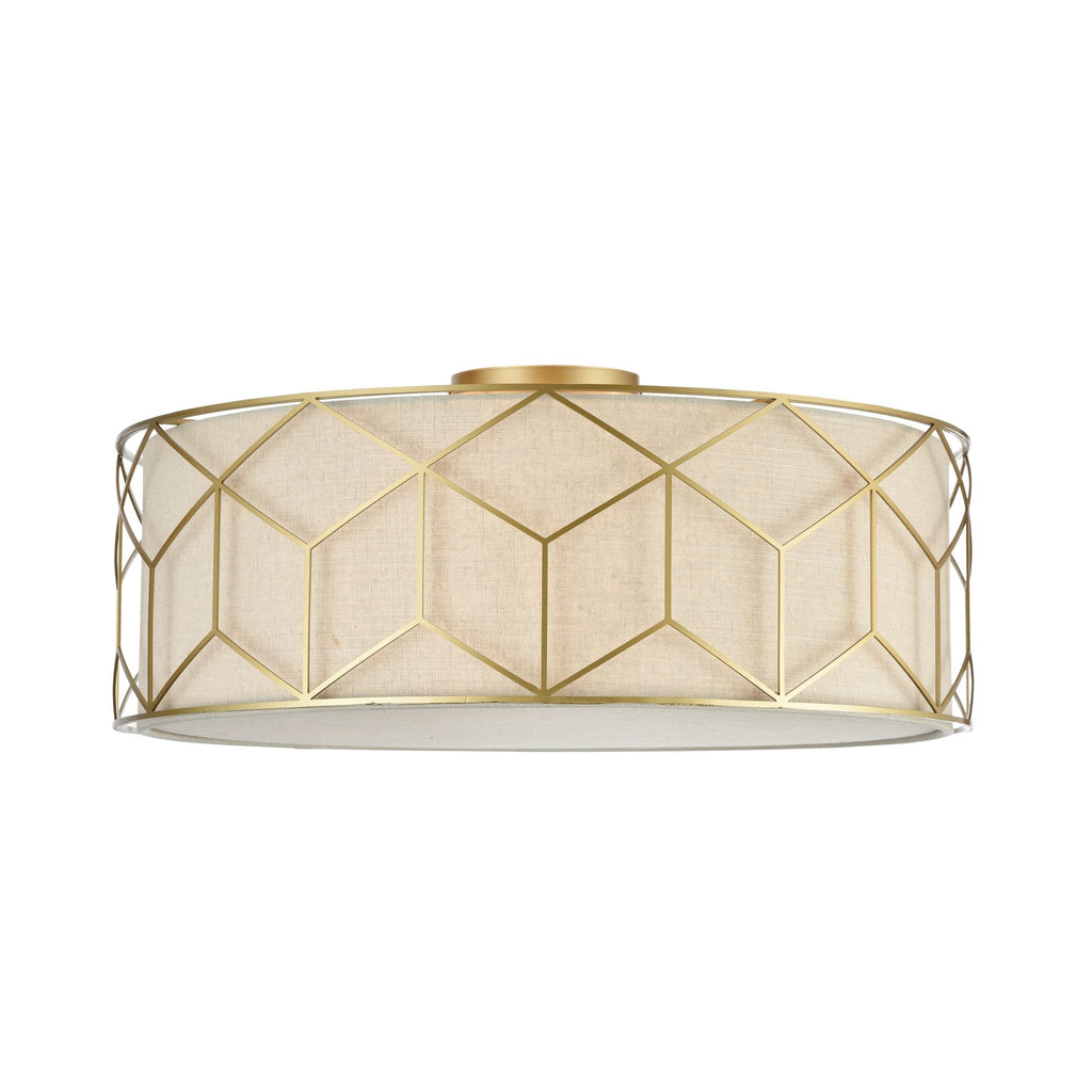 Struttura in Metallolo con decoro stencil. Paralume rivestito in lino.