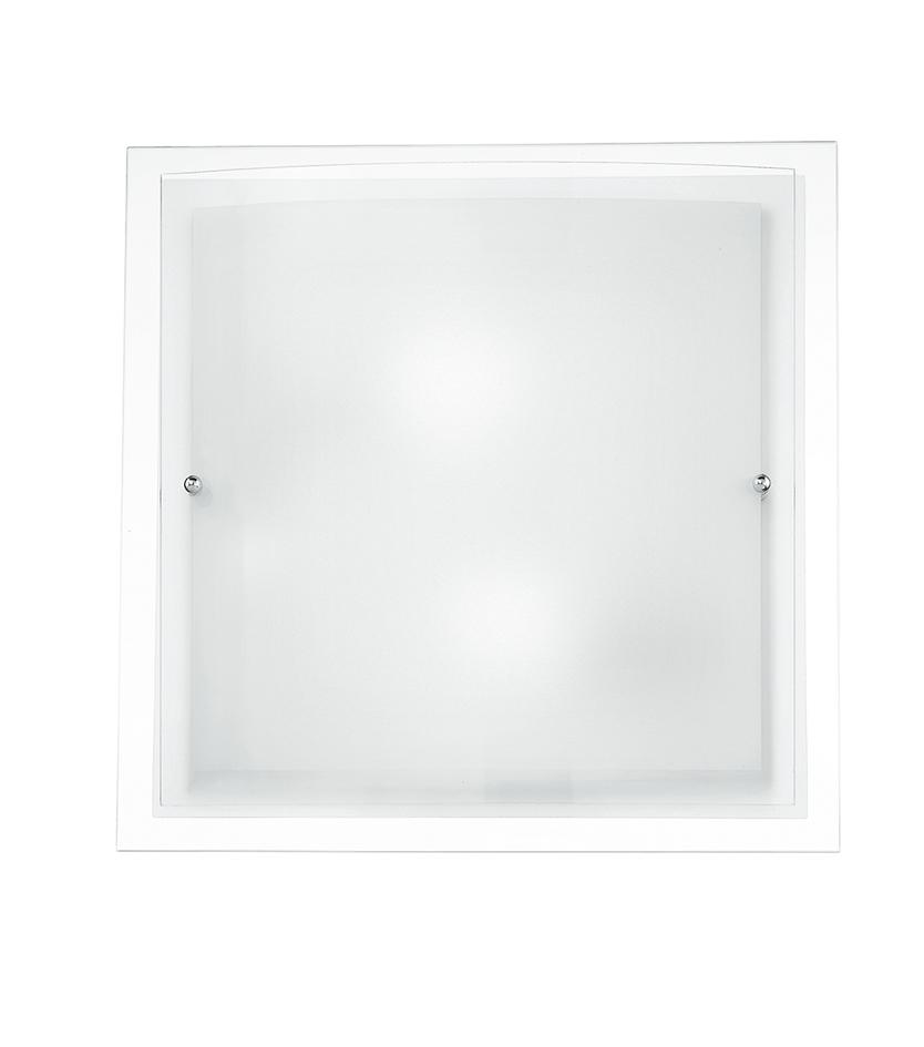 Plafoniera Quadrata Bordo Trasparente Doppio Vetro Bianco Satinato Lampad Moderna E27