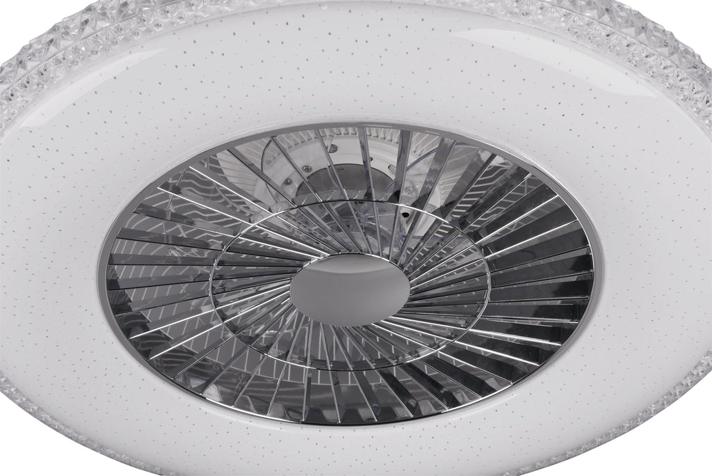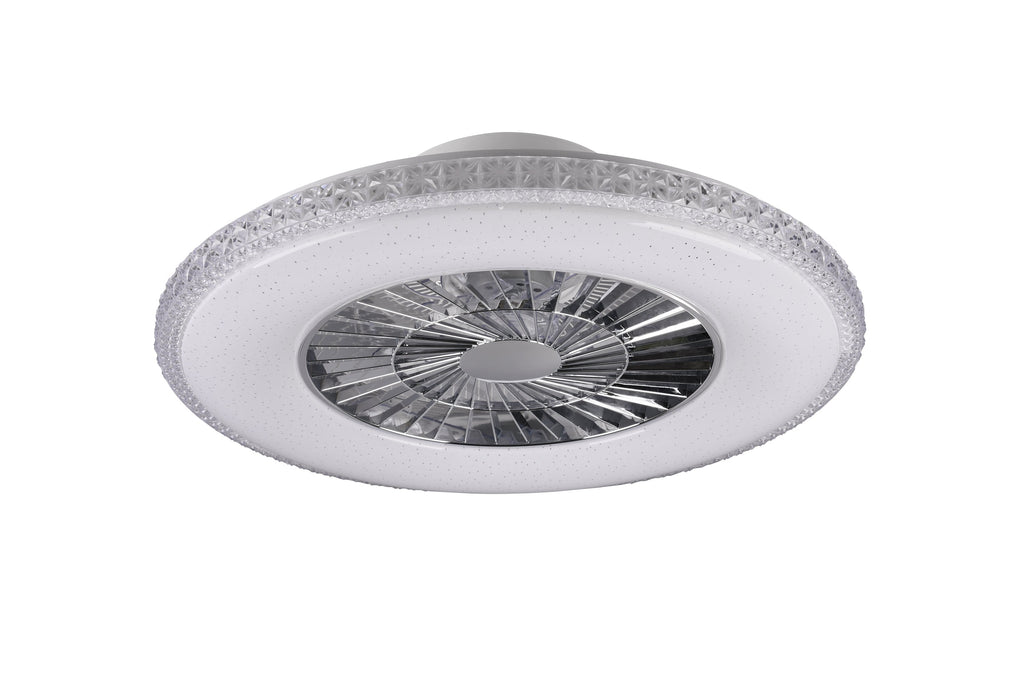 Harstad Ventilatore E Plafoniera Led Diffusore Satinato Ed Effetto Cristallo Con Telecomando Multifunzione Regolazione Intensita' E Temperatura Di Colore D.60Cm