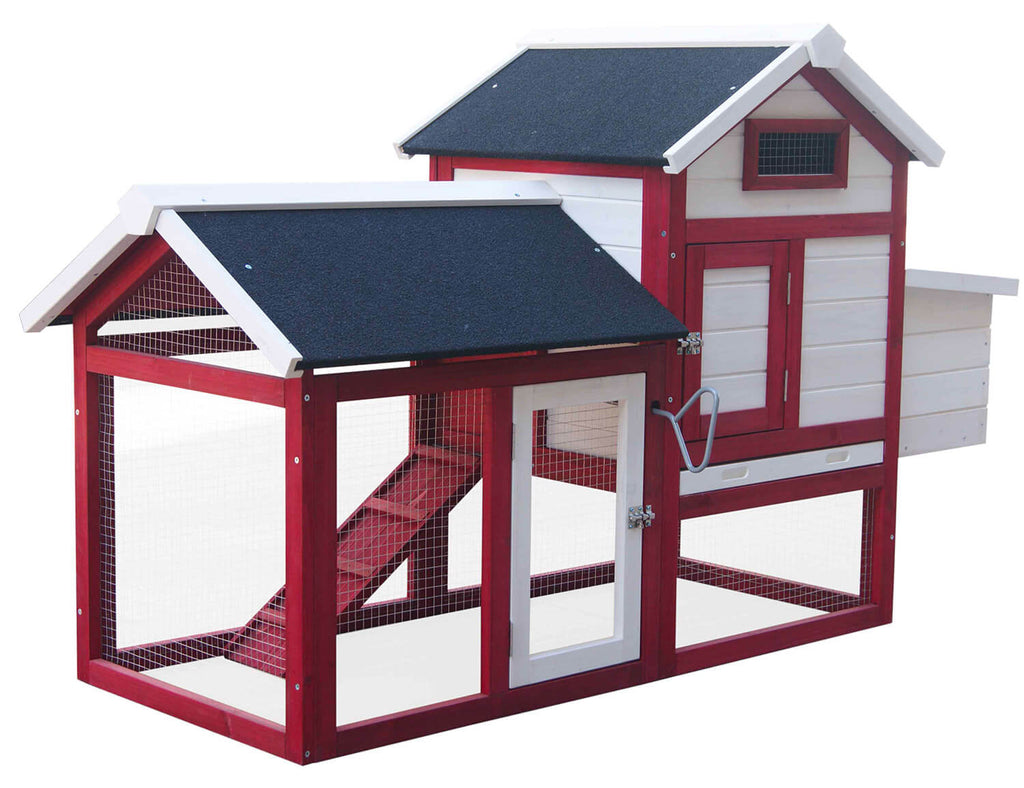 Pollaio da Giardino 152x62x92 cm Per 3 Galline in Legno Rosso e Bianco
