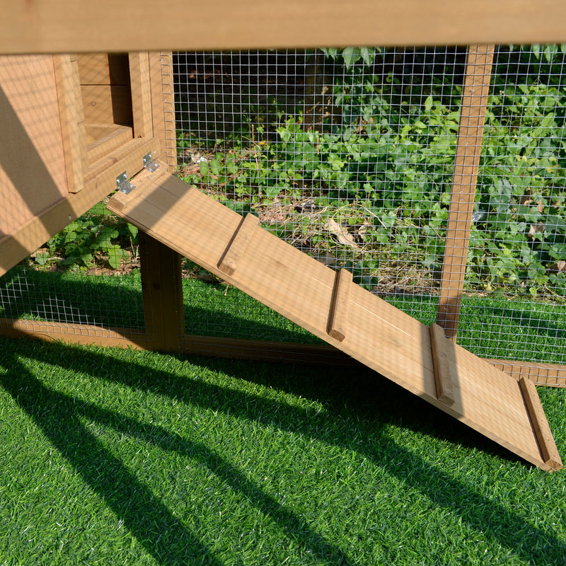 - La rampa antiscivolo consente al pollame di entrare facilmente nella zona di alloggiamento rialzata.