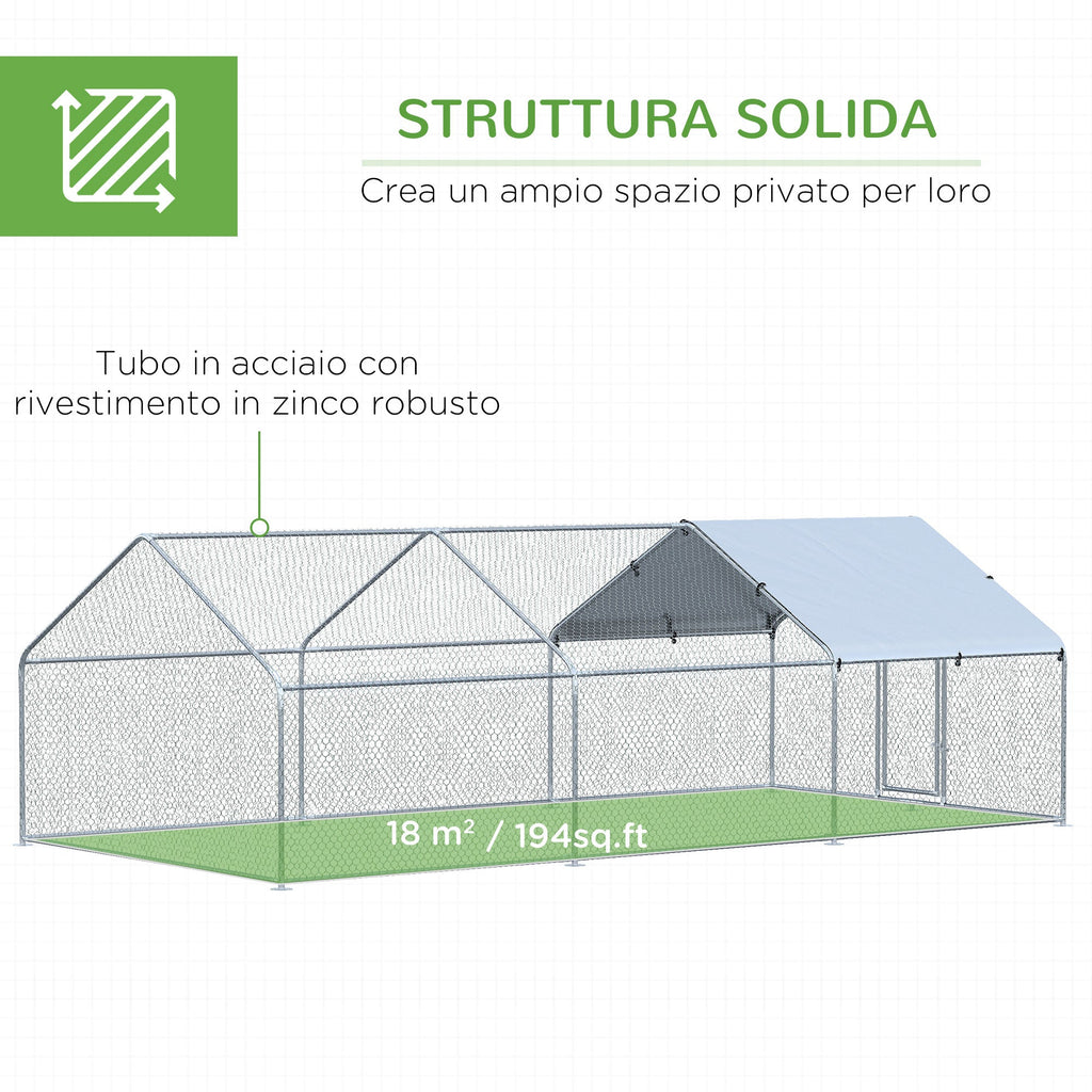 Pollaio Gabbia per Galline 600x303,5x195 cm in Metallo con Copertura in Tessuto Oxford Argento
