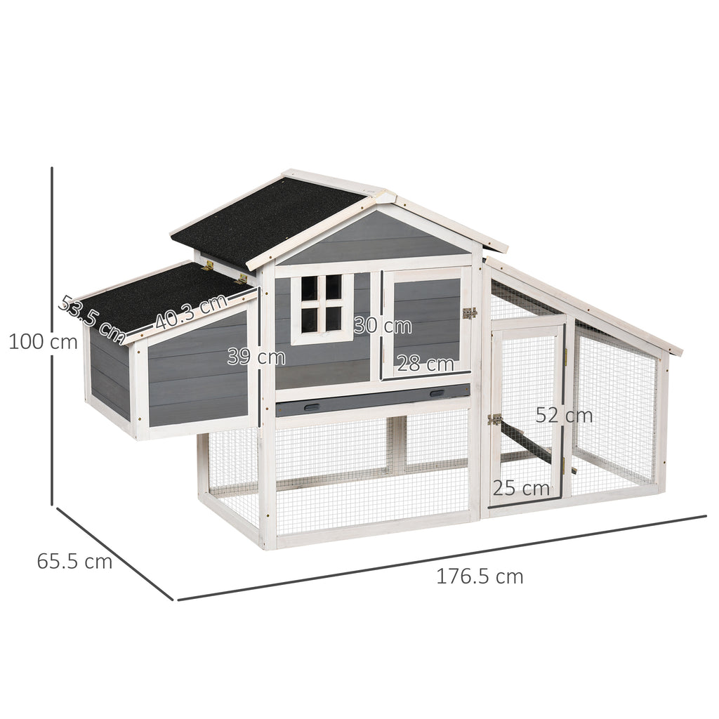 Pollaio Gabbia per Galline da Esterno 176,5x65,5x100 cm con Area Aperta Recitanta Grigio