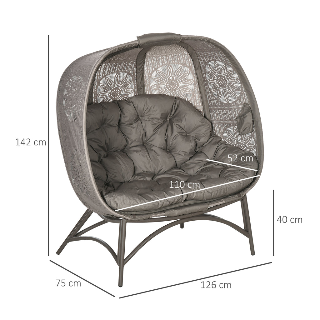 - CHIC ED ELEGANTE: Questo divanetto da giardino ha un tettuccio rivestito con rete macramè con decorazioni a fiori, che dona un tocco elegante e originale