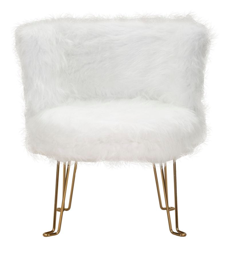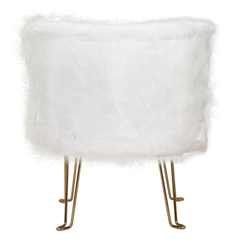 Particolare poltrona dal design lineare in tessuto imbottito e con gambe in metallo dorato. Lasciati avvolgere da un caldo abbraccio.