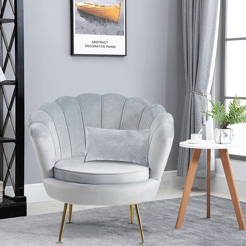 Poltrona a Conchiglia 78x73x78 cm in Velluto Vintage Piedi Oro Sofia Grigio