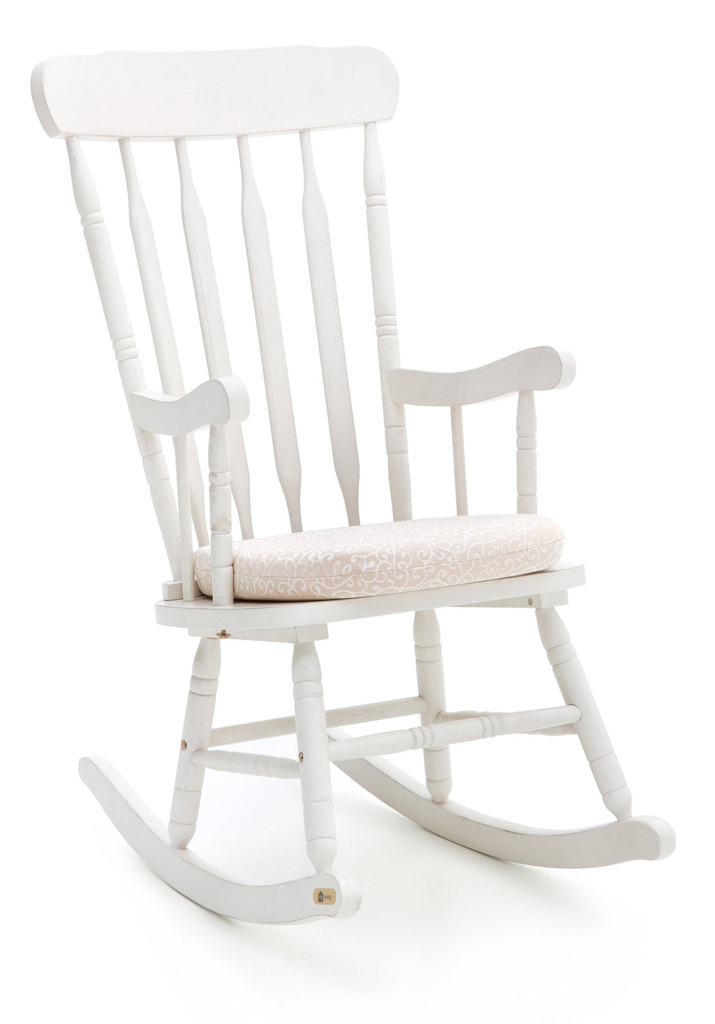 Poltrona a Dondolo 78x56x108 cm in Legno Massello con Cuscino Beige