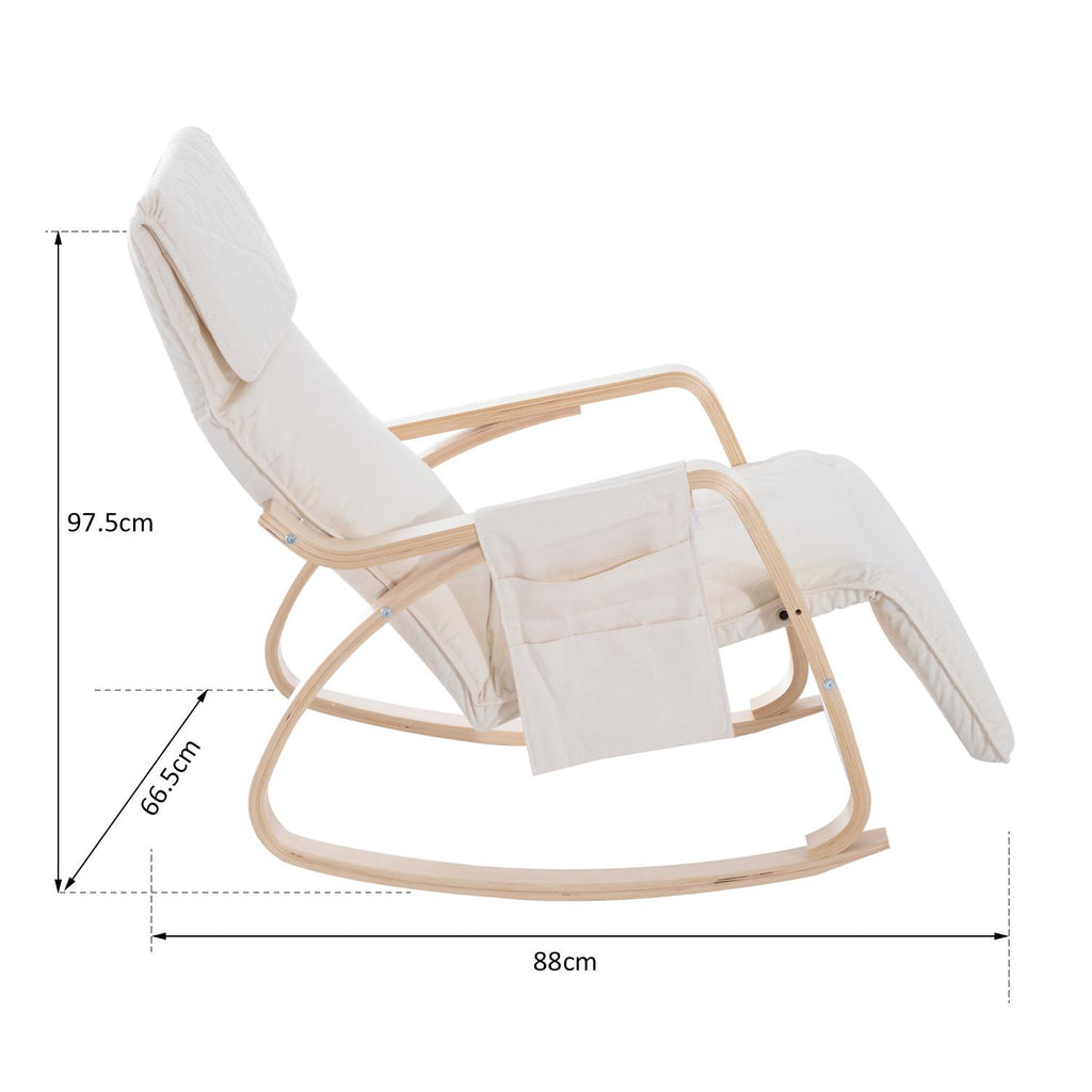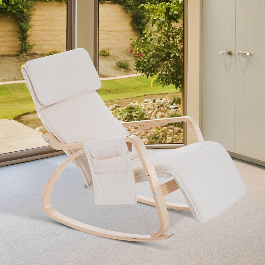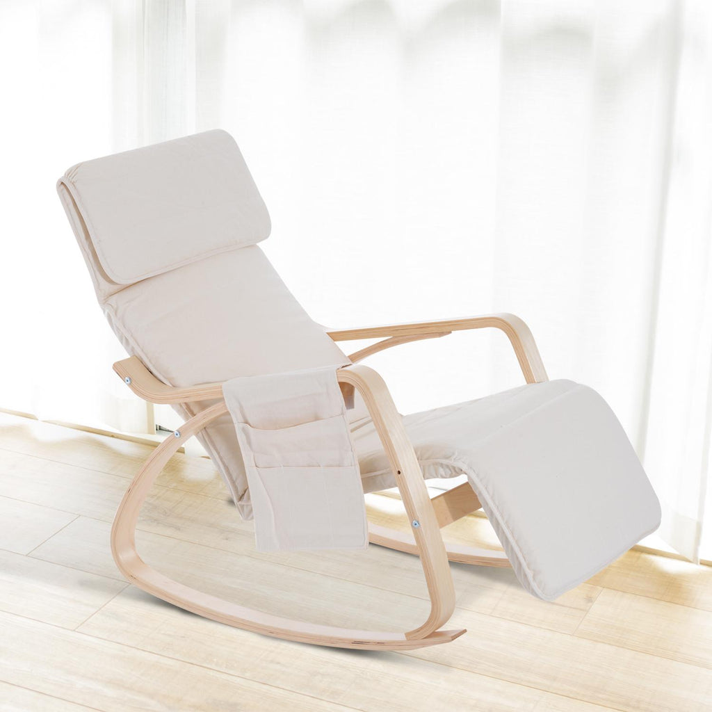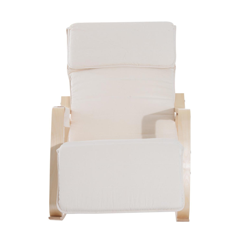 Poltrona a Dondolo con Poggiagambe in Legno Curvato Crema