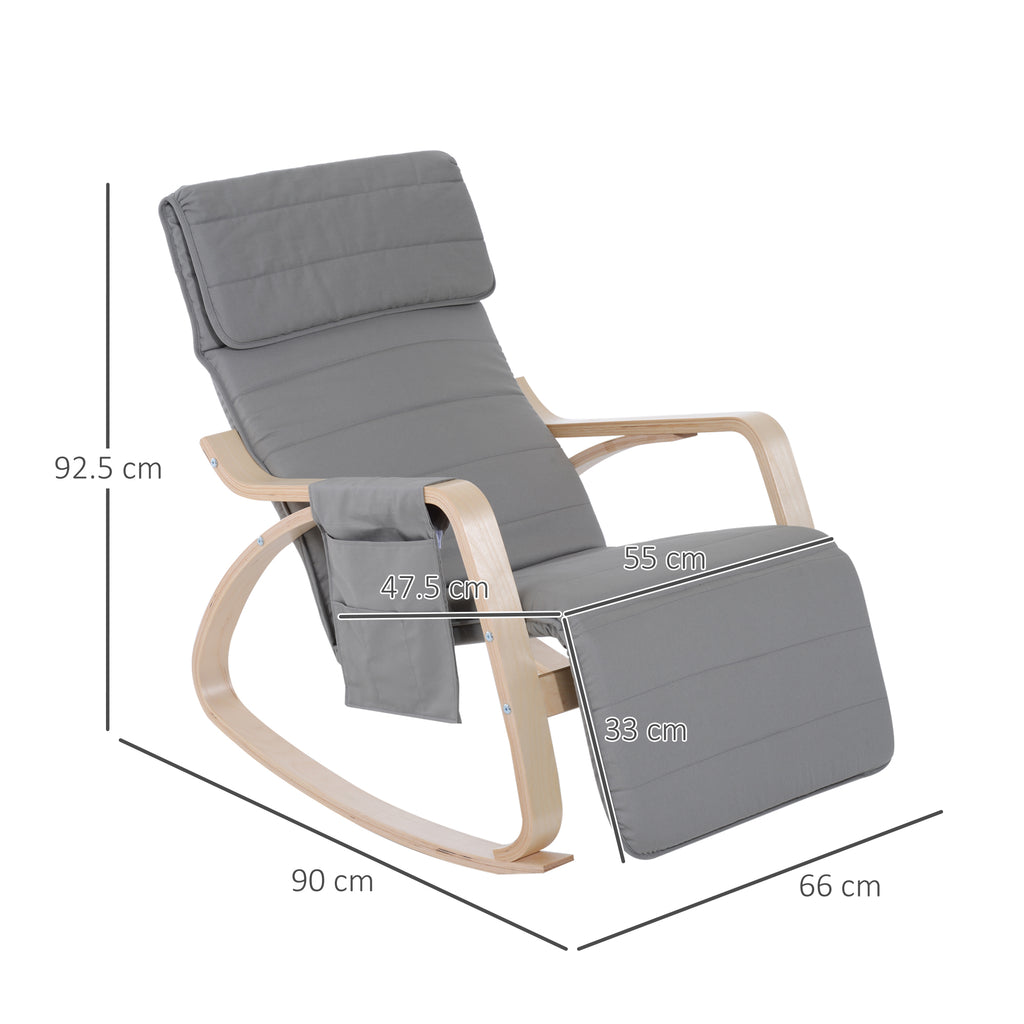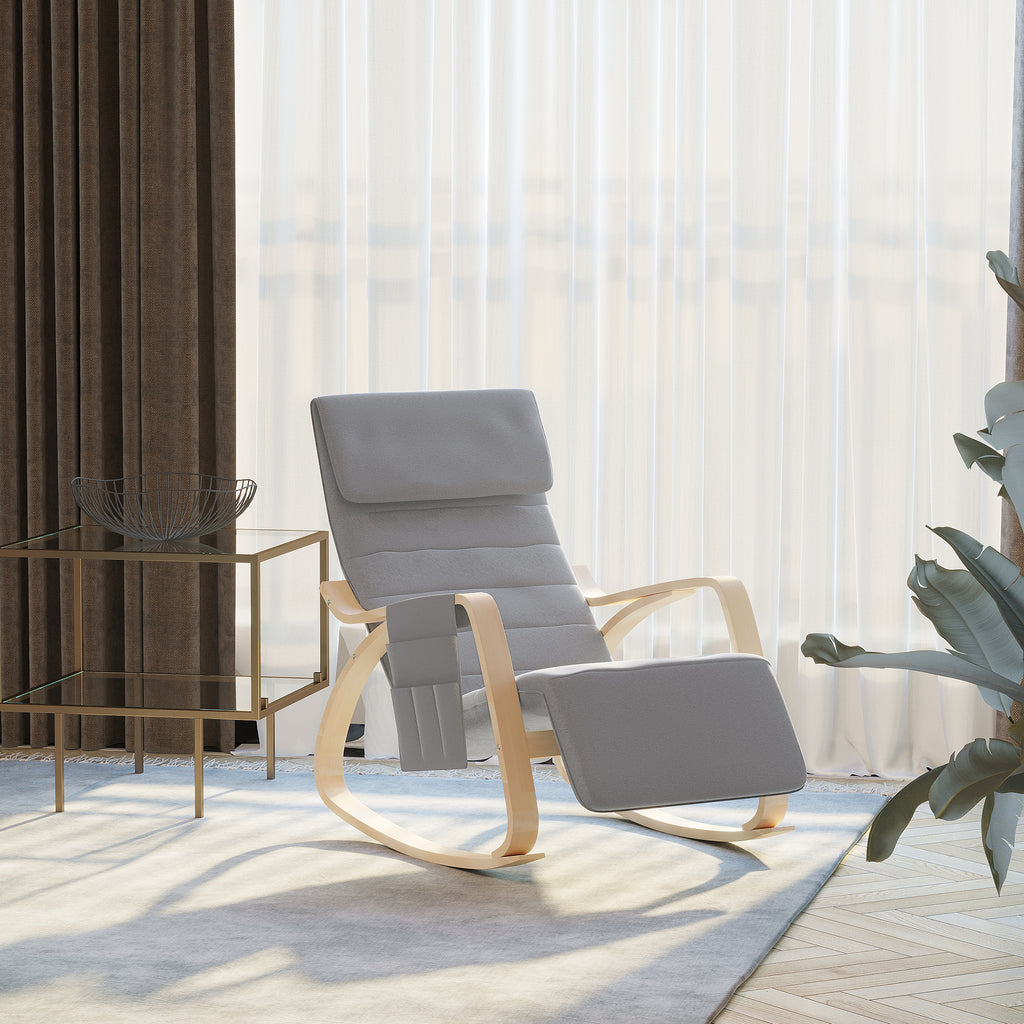 Poltrona a Dondolo con Poggiagambe in Legno Curvato Grigio