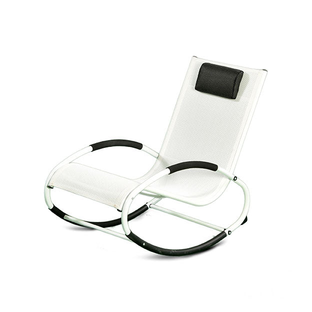 Poltrona a Dondolo da Giardino In Ferro e Textilene Con Cuscino Taddei Rocking Bianca