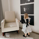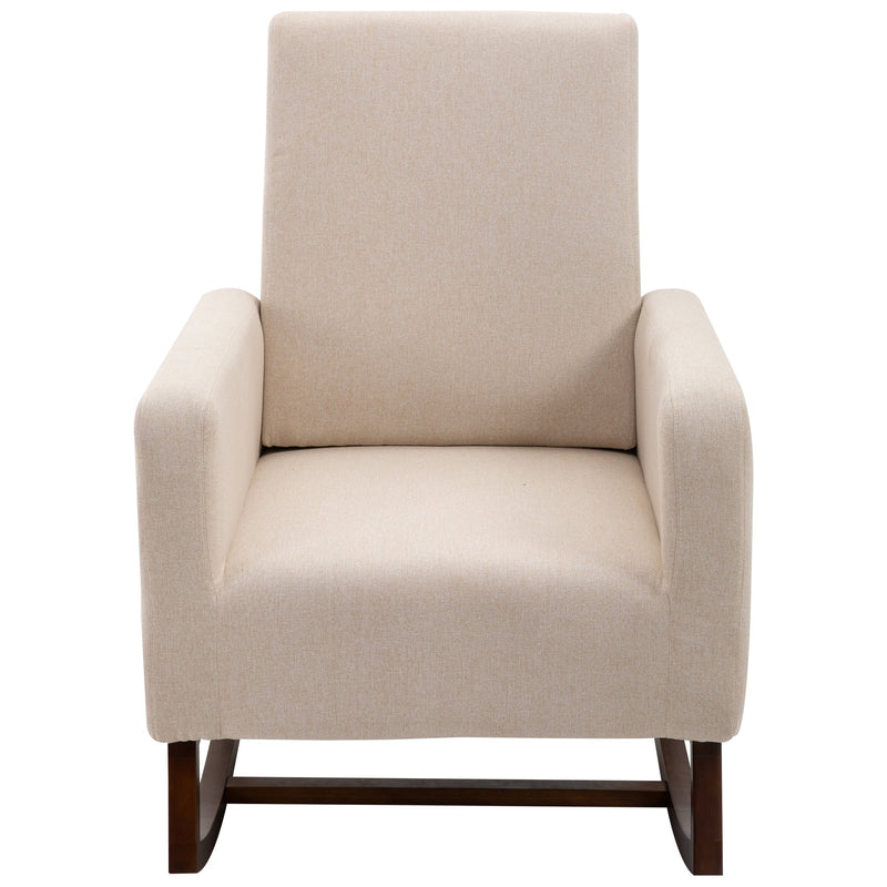 Poltrona a Dondolo Imbottita 77x92x100 cm in Legno e Lino Beige