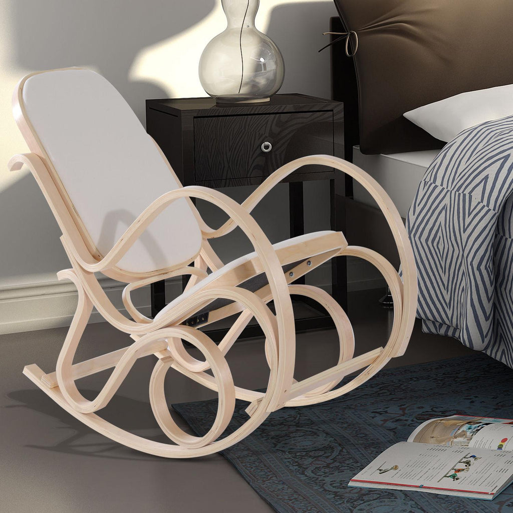Poltrona a Dondolo in Legno Stile Classico Crema