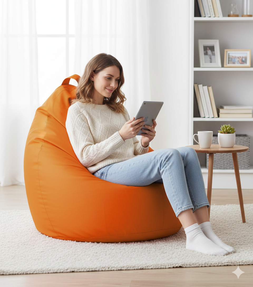 Poltrona a Sacco Pouf in Similpelle Arancio Avalli