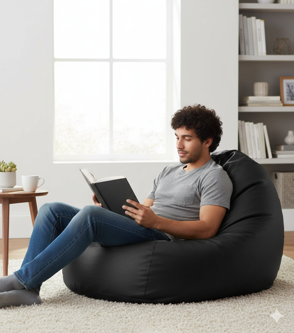 Poltrona a Sacco Pouf in Similpelle Nera Avalli