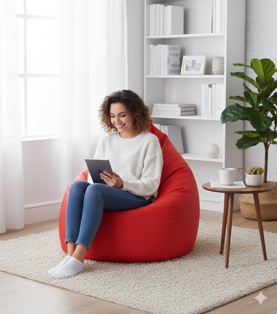 Poltrona a Sacco Pouf in Similpelle Rossa Avalli