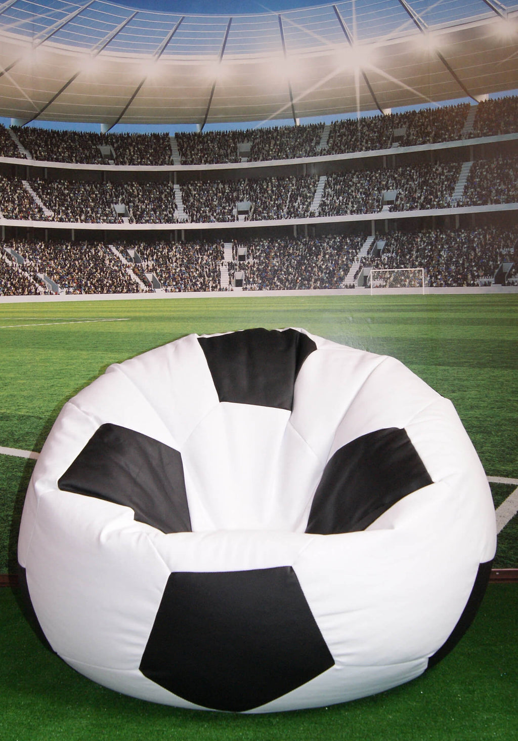 Poltrona a Sacco Pouf ergonomica a forma di Pallone da Calcio in Similpelle pronta per l'uso.