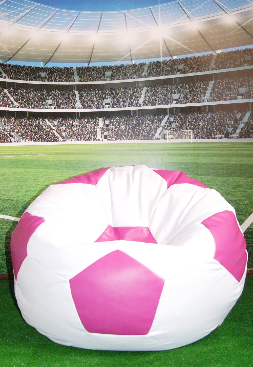 Poltrona a Sacco Pouf Ø100 cm in Similpelle Baselli Pallone da Calcio Bianco e Rosa